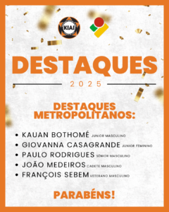 DESTAQUES 2025Por Alexandre de Andrade Medeiros / dezembro 13, 2025 Dia 13 de dezembro, acontece o Bonenkai da FGJ. Neste evento serão premiados os atletas destaques 2025. A Kiai gostaria de parabenizar os atletas destaques metropolitano Kauan Bothomé, Giovanna Casagrande, Paulo Rodrigues, João Medeiros e François Sebem.